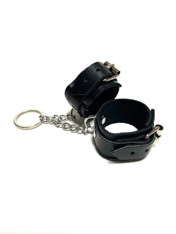 Брелок для ключей, выполненный из качественной натуральной кожи. Оригинальный брелок наручники - отличный подарок для друга, подарок для девушки, подарок коллегам или просто подарок на память. Кожаный брелок имеет надежное металлическое кольцо для крепления, кожа плотная, поэтому прослужит долго и не растрепается. Брелок из кожи на ключи имеет удобную форму, теперь Ваши ключи не затеряются в сумке! Аксессуар прекрасно подойдет, как брелок для сумки, брелок детский, брелок для кошелька, брелок для машины, ключница автомобильная, брелок на рюкзак, брелок для авто или любой вещи по вашему желанию. Очень оригинальный и стильный аксессуар.