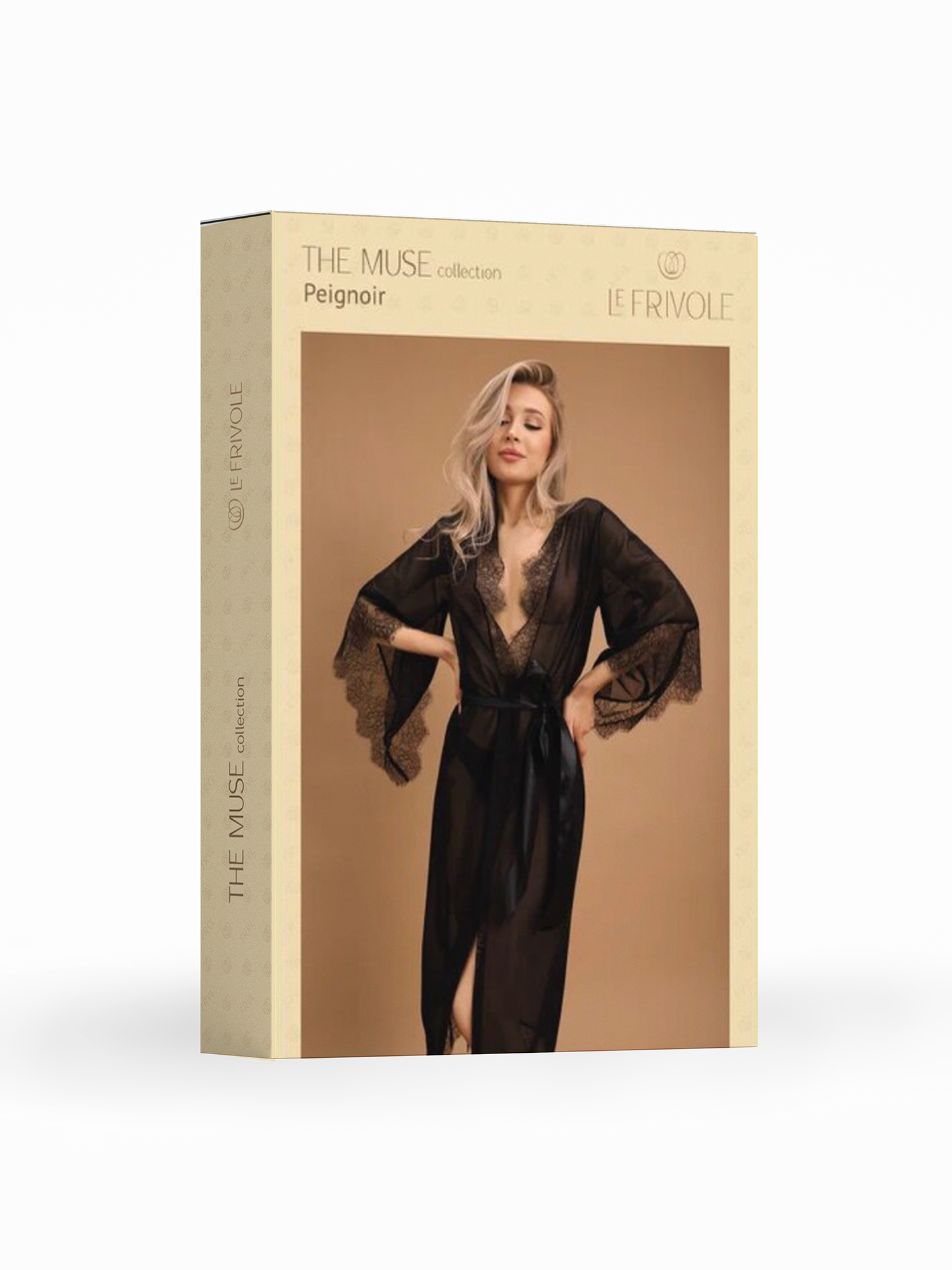 Этот длинный пеньюар создан для тех, кто желает выглядеть элегантно и изысканно. Этот наряд сделан из прозрачной сетки, что позволяет обнажить красивое женское тело, но в то же время не показывая его полностью. При этом, потрясающее тонкое французское кружево с ресничками, отделка края и низа, придают пеньюару особый шарм и изысканность.