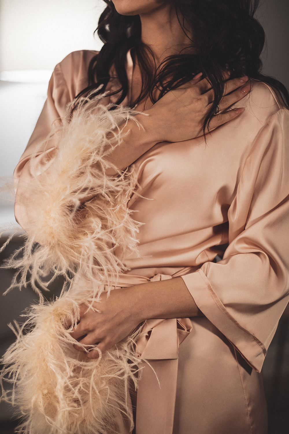 Самый эффектный и популярный халат-накидка с боа, вызывающий бурю эмоций и интереса к твоему образу. Халат-накидка из персикового армани шелка, струящегося по твоему телу, создающего эффект "второй кожи", абсолютно комфортного и уютного, но при этом оставляющего за собой сексуальность и элегантность. Халат-накидка станет идеальным образом для домашнего использования, а также, сняв боа, которые легко отстегиваются, накинув его поверх мини-платья, шикарной накидкой для выхода в свет.Состав: АРМАНИ ШЕЛК 100% Страна: РОССИЯ