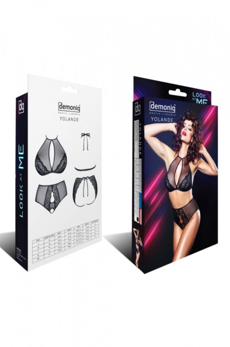 Комплект Mia – позволит вам насладиться играми, без каких либо ограничений. Он подчеркивает формы вашего тела и даст возможность вдоволь налюбоваться им. Благодаря открытой форме бюстгальтера и черной глянцевой окантовке ваша грудь будет выглядеть особенно аппетитно и соблазнительной. Так же в комплект входят трусики, подчеркивающие округлую форму ваших ягодиц, а сборка на задней части добавит вашему образу пикантности.