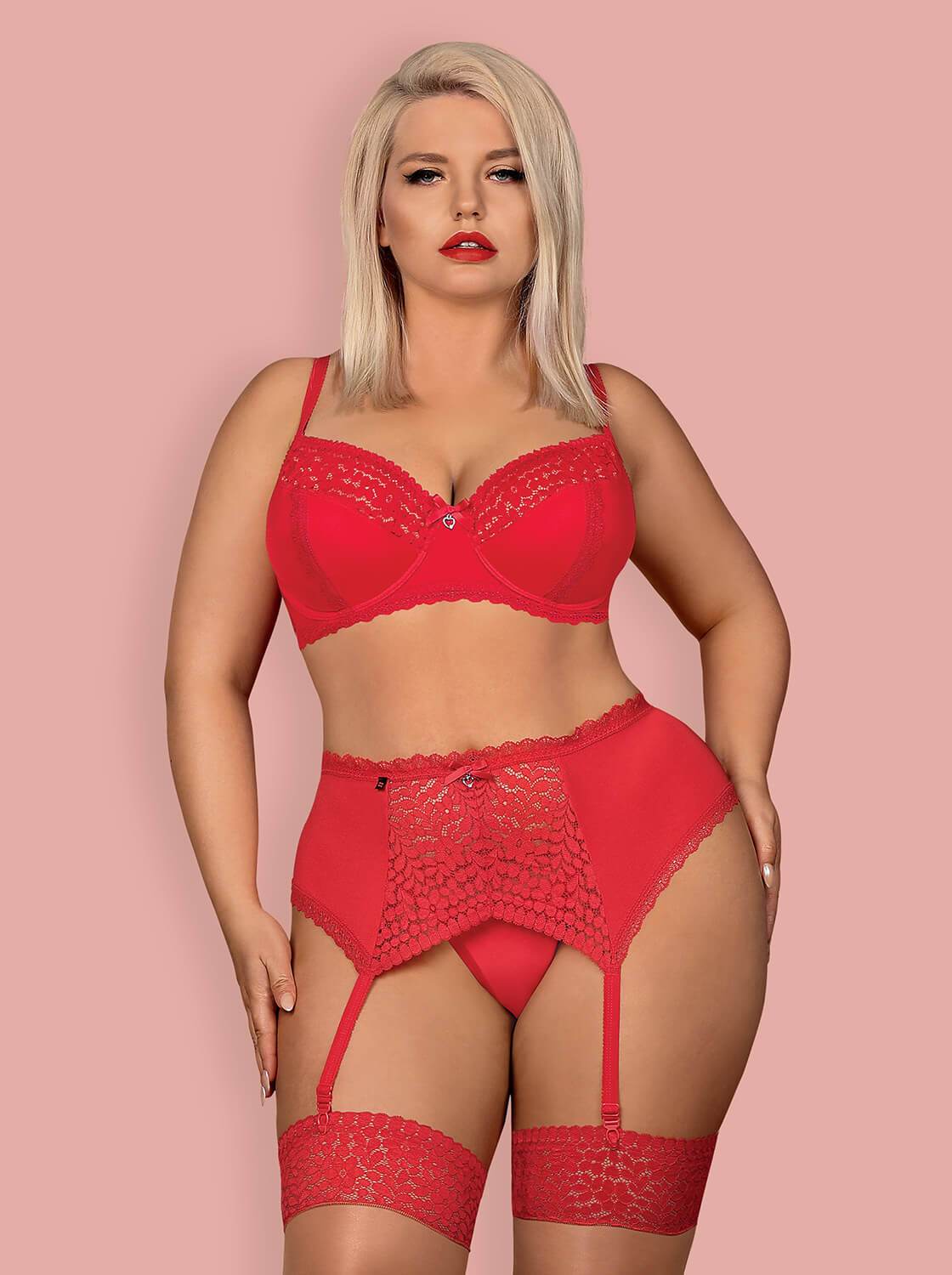 Чувственный комплект, который отлично смотрится на полный бюст? Он перед вами! Красный цвет, кружевные детали и удивительные украшения - этот набор исполнит ваши мечты! И не только твои мечты. Покажите это своему партнеру и пригласите его на марафон чудесного удовольствия. Наденьте великолепный комплект Жулироуз! Атмосфера становится горячей? Это только начало. Будет все жарче и жарче .