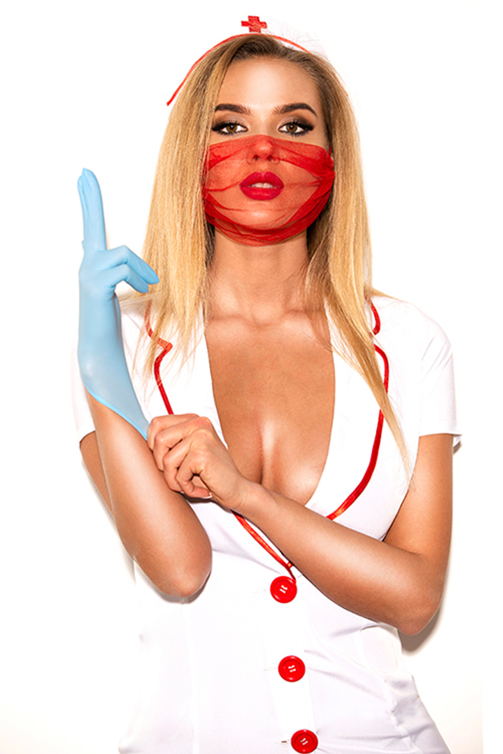 Образ соблазнительной медсестры – классический в сфере эротических игр. При виде этой сексуальной красавицы у мужчин учащается сердцебиение и требуется срочная медицинская помощь. Эротический костюм Медсестра укомплектован белым халатиком с красными пуговицами, прозрачно-красными перчатками, интригующей повязкой на лицо и головным убором. В этом образе вы сможете обследовать пациента и провести незабываемый вечер. Костюм упакован в потрясающую подарочную упаковку, с игривым перышком внутри