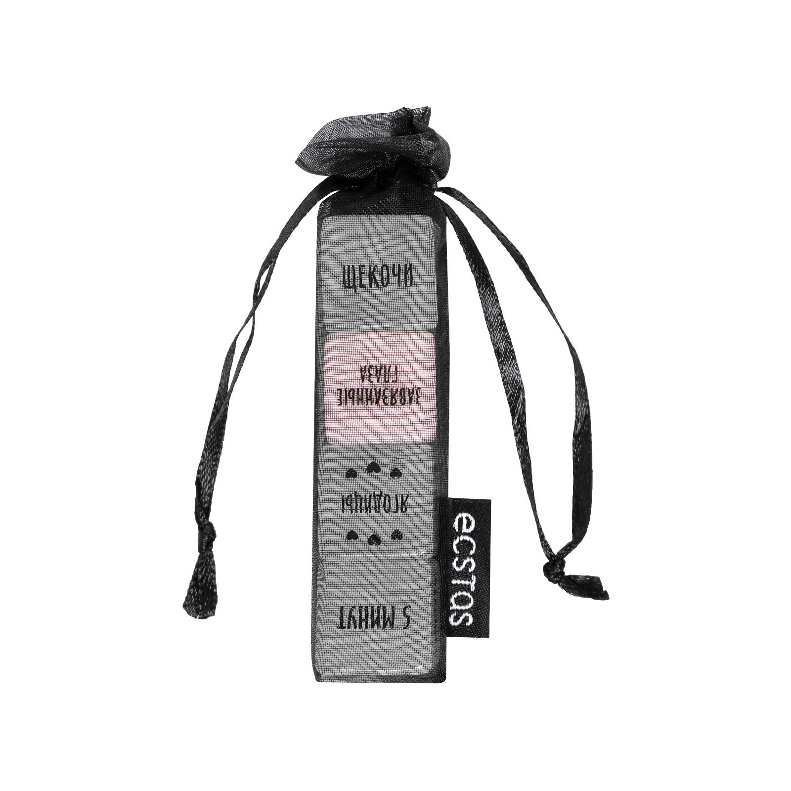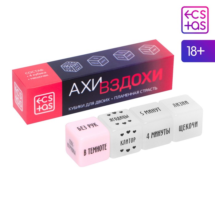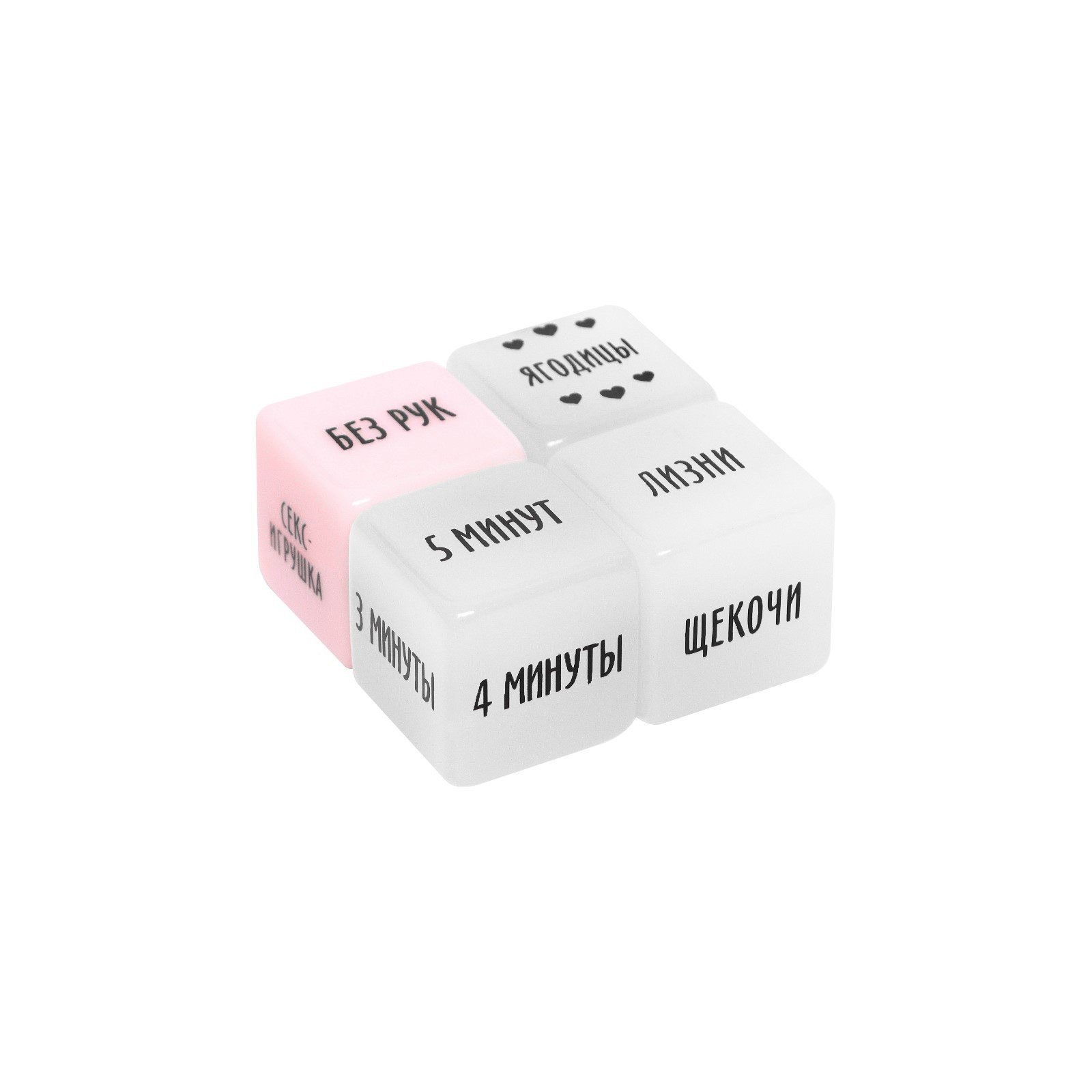 Внутри вас ждёт четыре кубика. Один из них подскажет место на теле партнера, второй - что нужно делать, третий - как это делать, а четвертый - время, за которое это нужно сделать.
