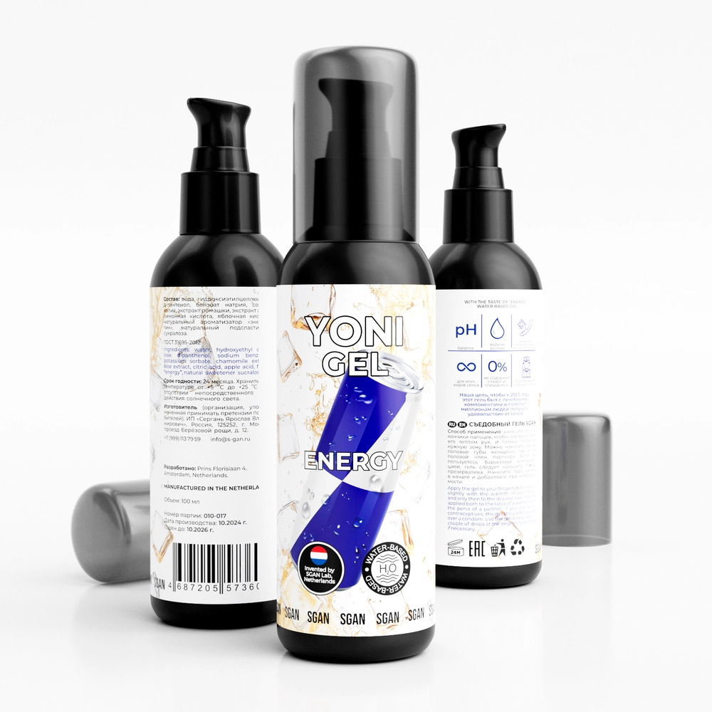 Лубрикант на водной основе “SGAN” со вкусом энергетик разработан сексологами в Нидерландах.Вкусовая линейка лубрикантов "SGAN" разработана с учетом физиологии, совмещает в себе вкус и аромат, при этом сохраняет все регенерирующие свойства классического лубриканта. Не оставляет липкости, без химического привкуса, не содержит сахара и калорий. Для сладости добавлен натуральный подсластитель - сукралоза. Абсолютно безопасен для проникновения и при проглатывании. Эксклюзивная густая формула обеспечивает лучшее обволакивание половых органов, тем самым гарантируя приятные ощущения без высыхания и обеспечивая экстра долгое скольжение. Благодаря исключительно высококачественным компонентам сохраняет естественный pH баланс слизистых, не вызывает жжения и неприятных ощущений.