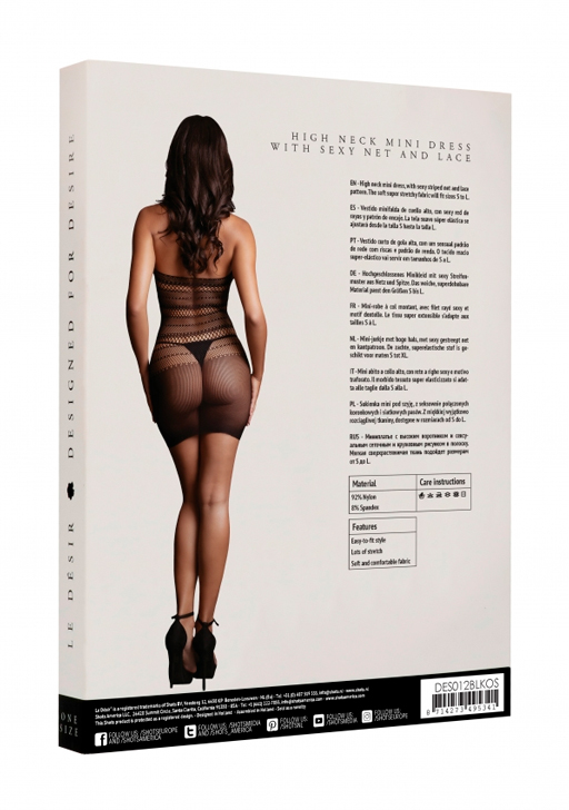 High Lace Neck Net Mini Dress - эротическое миниплатье с высоким воротником. Оно имеет очень сексуальный рисунок, сочетающий сеточку и кружево.