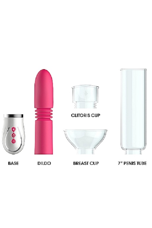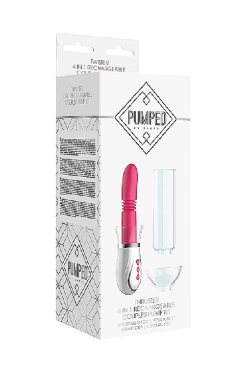 Thruster - 4 in 1 Rechargeable Couples Pump Kit - набор, состоящий из 4 предметов. В него входят универсальное основание, к которому могут быть прикреплены помпа для сосков или клитора, помпа для груди или вульвы, помпа для пениса и насадка в виде дилдо с функцией «поступательного воздействия». Мощный мотор, способный вращаются со скоростью 11000 об/мин, обеспечивает 4 уровня всасывания и 7 режимов вибрации. Комбинации, которые можно получить с помощью этого набора, бесконечны.Основа заряжается через специальный аккумуляторный USB кабель.Полная зарядка занимает 120 минут, ее достаточно для беспрерывной работы в течение 120 минут.Материал: АБС-пластик, полистирол, ТПЕ