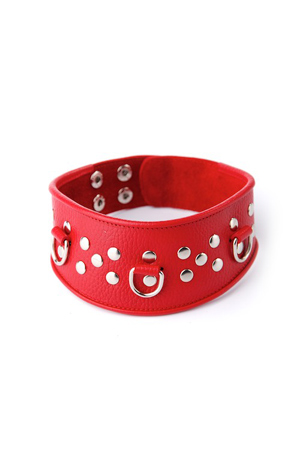 Изготовлен из натуральной кожи с велюровой подкладой. При изготовлении использована никелированная фурнитура. Размер универсальный. Один из основных атрибутов BDSM.