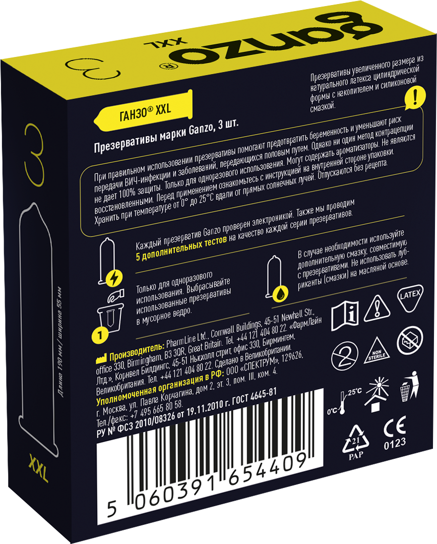 Презеврвативы Ganzo XXL - увеличенного размераПроизводитель: Великобритания.Длина, см — 19. Материал — Латекс