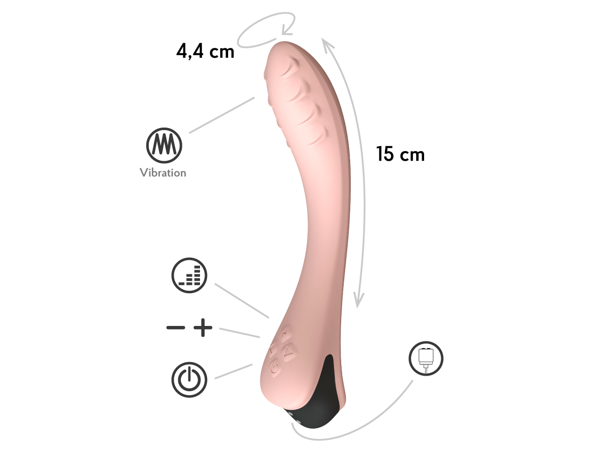 Роскошный персиковый вибратор Apus способен прочувствовать и промассажировать всю внутреннюю поверхность влагалища и особое внимание уделить точке G. В этом тихом, но мощном гаджете 8 режимов вибрации для постепенного повышения градуса возбуждения и отдельная кнопка погружения в пучину оргазмических ощущений. Идеально гладкий гнущийся 19-ти сантиметровый ствол с естесственным загибом, выполненный из полностью безопасного силикона удобен как для соло, так и для совместной чувственной игры. Не отказывай себе в удовольствии! Длина основной части: 11,6см Диаметр основной части: 3,4см Общая длина: 19см Вес: 176,5г