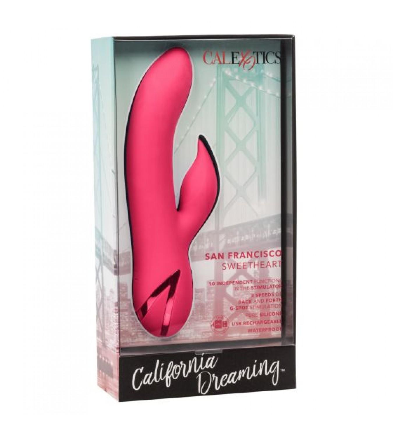 Вибромассажер San Francisco Sweetheart – перезаряжаемый мульти скоростной вибратор кролик из бесшовного материала с дополнительной обработкой. Вагинальный отросток у этой модели имеет изогнутую форму и функцию «манящее движение», предназначенные для более целенаправленного воздействия на точку G. Клиторальный отросток имеет отдельный мощный виброэлемент.